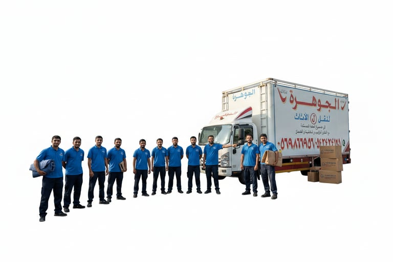 فريق عمل محترف: يتمتع فريق شركة الجوهرة بالكفاءة والاحترافية، حيث يتم تدريبهم بشكل دوري للتعامل مع الأثاث بحذر ودقة.